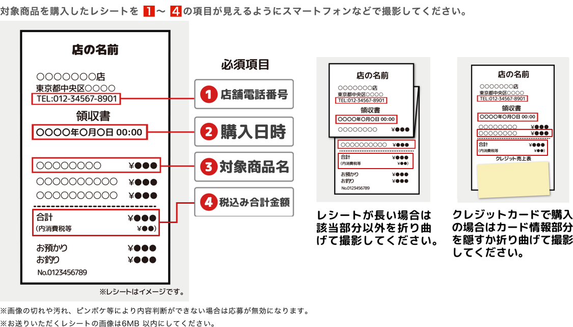レシート撮影時の注意